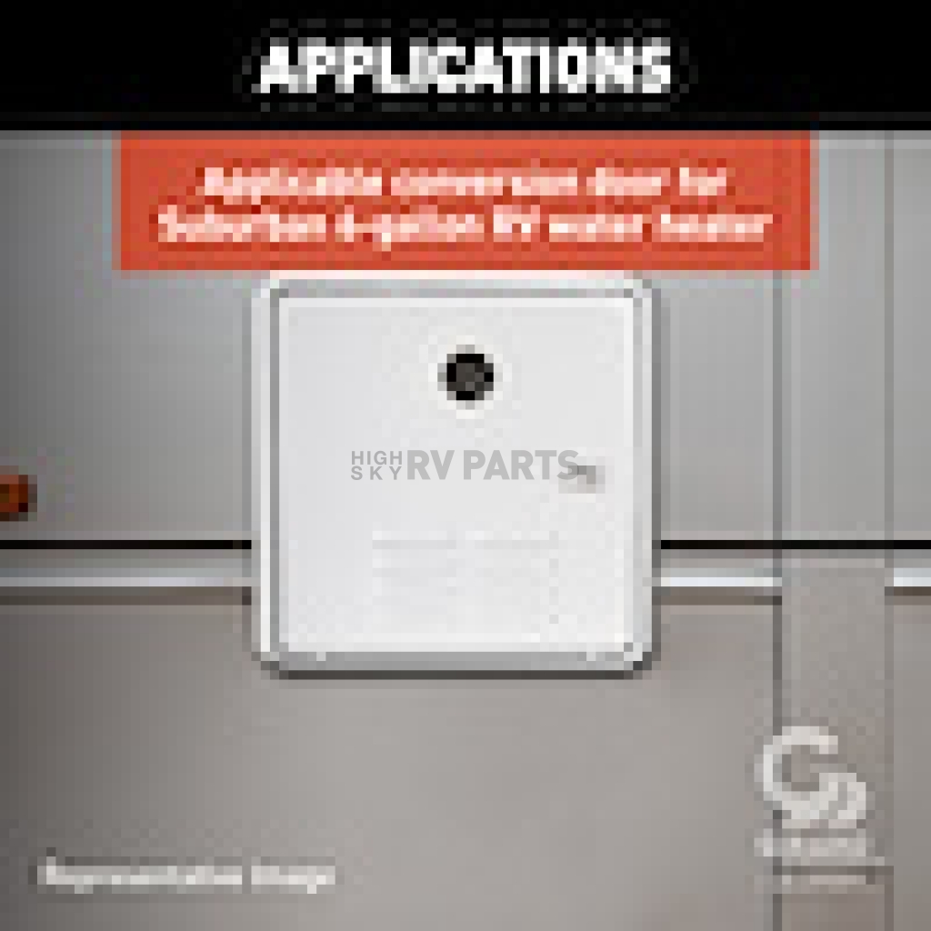 Water Heater Access Door; GSWH-2; Replacement For Suburban 6 Gallon Water Heater; Latch Closing; Polar White
