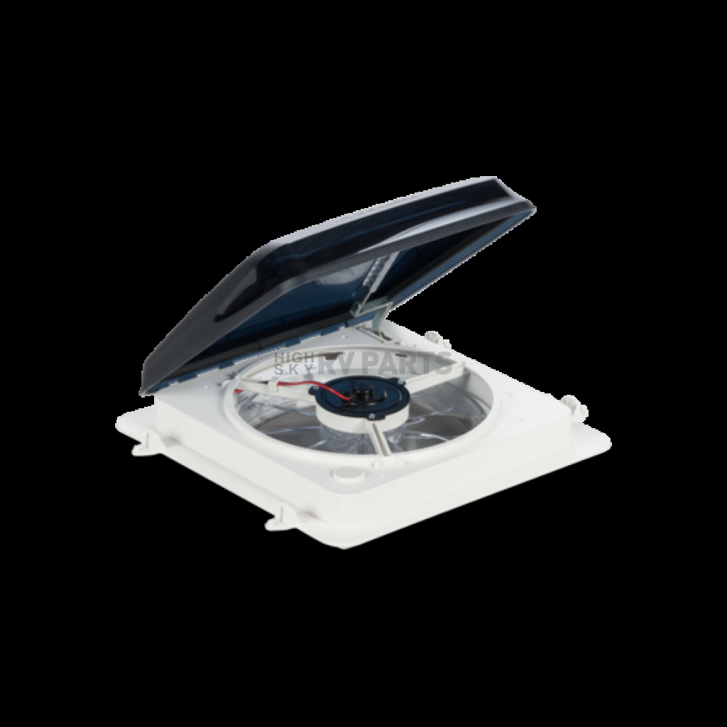 Roof Vent; Fan-Tastic ™; Manual Opening; For 14 Inch x 14 Inch; With 3-Speed/ Reverse/ Thermostat Fan; Smoke Dome/ White High Profile Base; High Density UV-Stable Polyethylene; With Vent Assembly/ Installation Hardware; With Integrated Tabs For Ultra Breeze Vent Cover