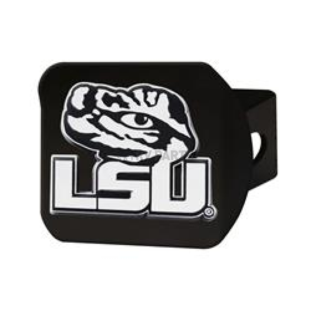 Trailer Hitch Cover; Fits 2 Inch Receiver; Louisiana State University Chrome Logo On Black; Chrome Plated; Metal
