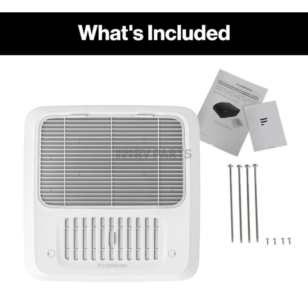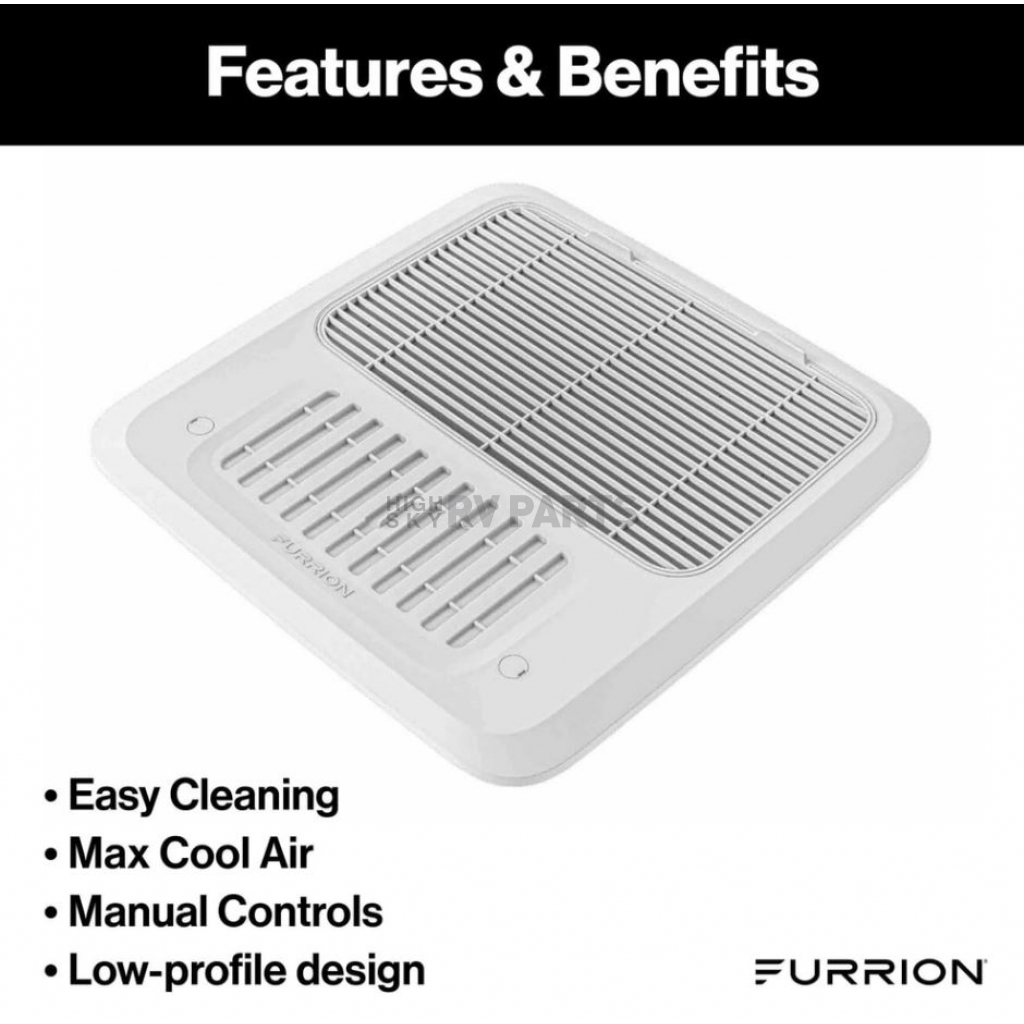 Air Conditioner Ceiling Assembly; Furrion Chill ™; For Use With Furrion Rooftop R32 Air Conditioners; For Ducted Or Non-Ducted Systems; Fits 14 Inch x 14 Inch Vent Opening; 17-1/4 Inch Length x 17-1/4 Inch Width x 4-3/8 Inch Depth Overall Dimensions; White; Controller And Wall Thermostat Sold Separately; With Detachable Filter/ Mounting Hardware