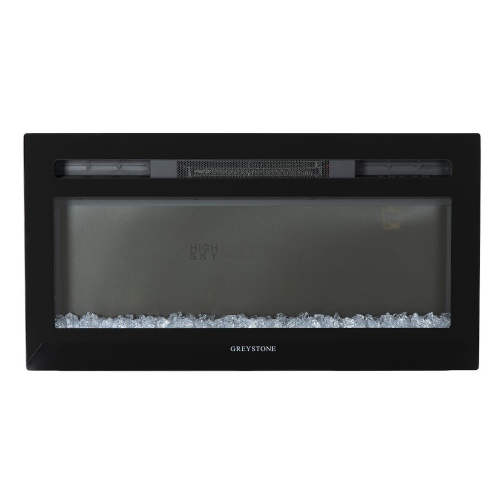 Fireplace Insert; Greystone ®; Electric Fireplace With Crystal Log Set; 31 Inch Length Viewing Area; Plug-In Mount; Non-Vented; 120 Volt; With 4 Colors And 4 LED Bars; Black. The dimensions are Wall cutout: opening 28-1/2" wide x 15" tall x 5-1/4" depth.