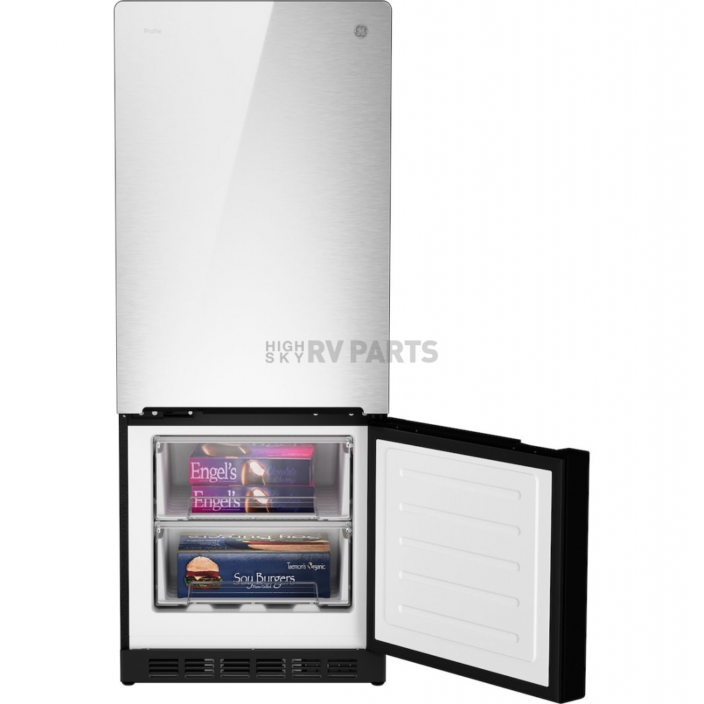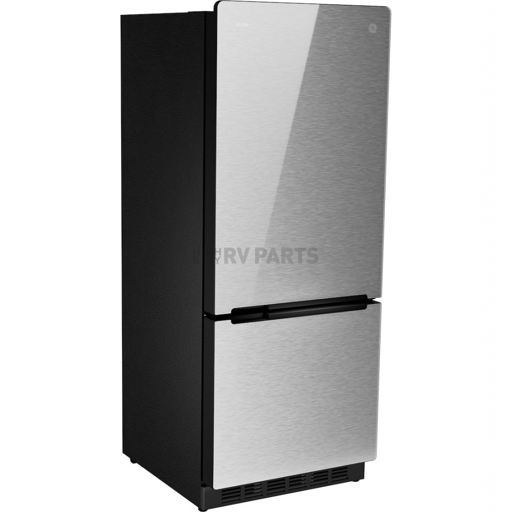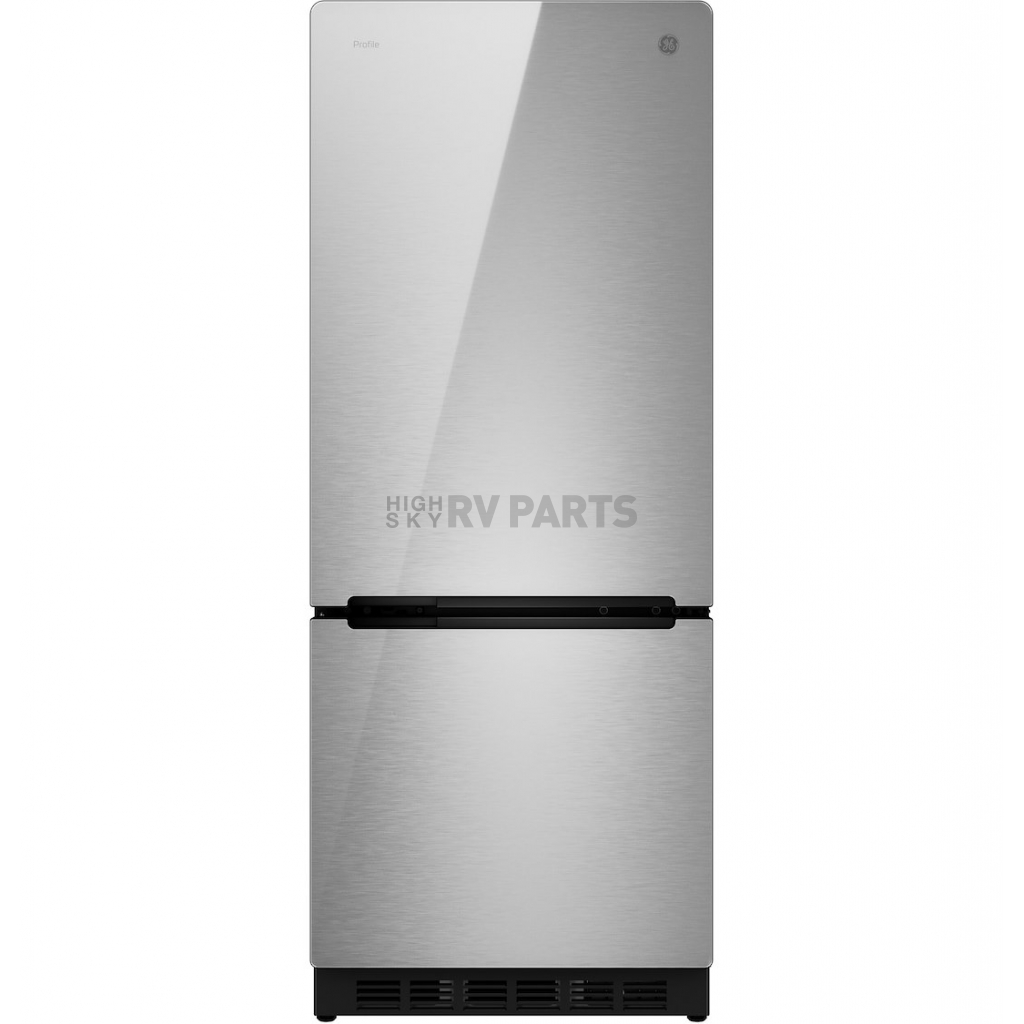 Refrigerator; GE Profile™; Dual Compartment 2 Door Refrigerator With Bottom Freezer; 10 Cubic Foot; 60 Inch Height x 23-1/2 Inch Width x 26-1/2 Inch Depth; 17.5 Amp/ 12 Volt DC; Without Ice Maker; LCD Panel Temperature Control; Glass Finish Door; With Crisper Drawers/ Glass Refrigerator Shelves/ Door Bins