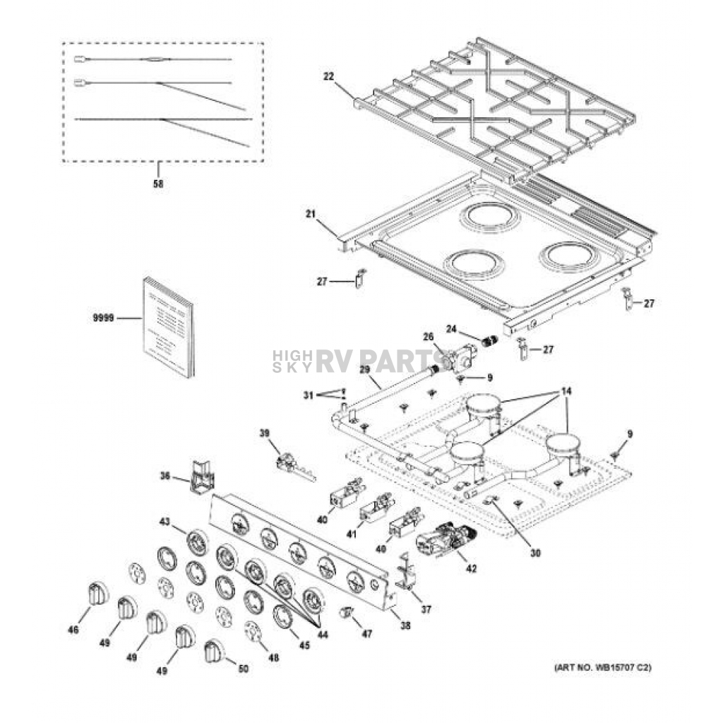 Stove; GE Profile™; Drop-In Cooktop; 20-1/8 Inch Width x 16-1/8 Inch Height x 17-3/4 Inch Depth; Spark Ignition; 12 Volt DC; 3 Burner; With Removable Grates For Cleaning; Cast Metal Knobs