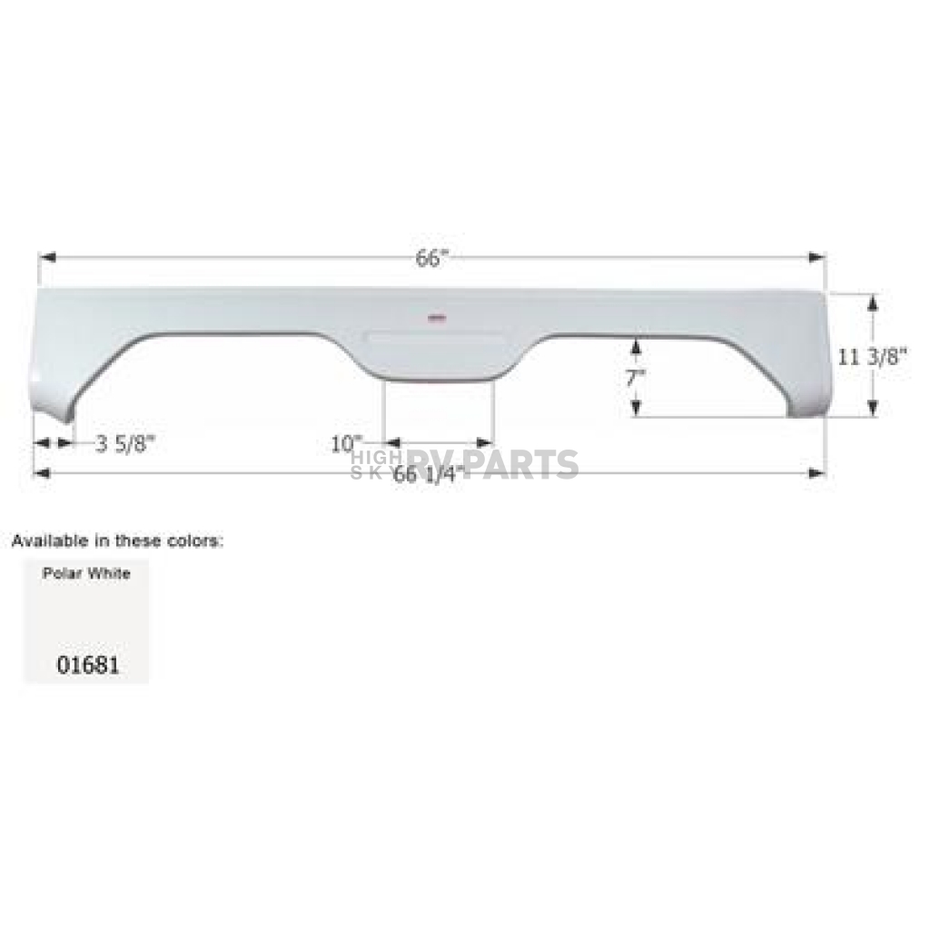 Fender Skirt; Tandem Axle; Fits Various Gulfstream Brands Including Seahawk/ Yellowstone; 66-1/4 Inch Length x 11-3/8 Inch Height; Polar White; ABS Plastic; Tandem; Single; Use Measurements To Determine Proper Fitment Before Ordering