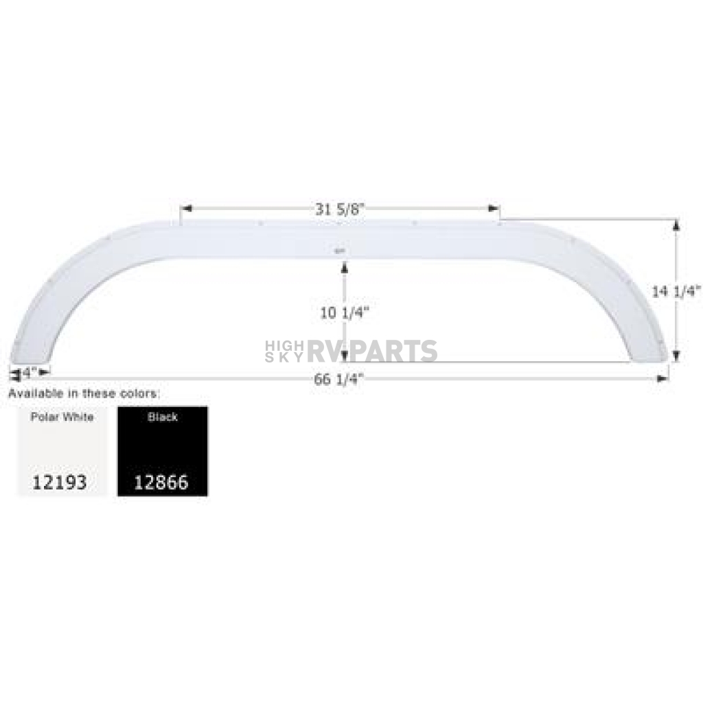 Fender Skirt; Single Axle; Fits Sunline Travel Trailers Including The Solaris; 66-1/4 Inch Length x 14-1/4 Inch Height; Black; ABS Plastic; Covers Single Wheel; Single; Use Measurements To Determine Proper Fitment Before Ordering