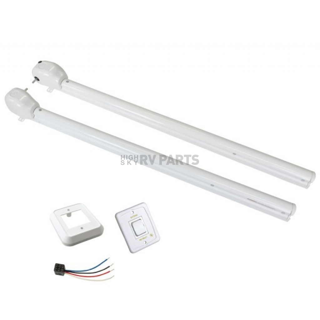 Awning Arm; Solera XL; For XL Patio Awnings; Fixed Pitch; Powered With Standard Head; 78 Inch From Awning Rail Down; White; With 2 Arms/ Switch and Wiring Harness/ Fasteners; Full Set