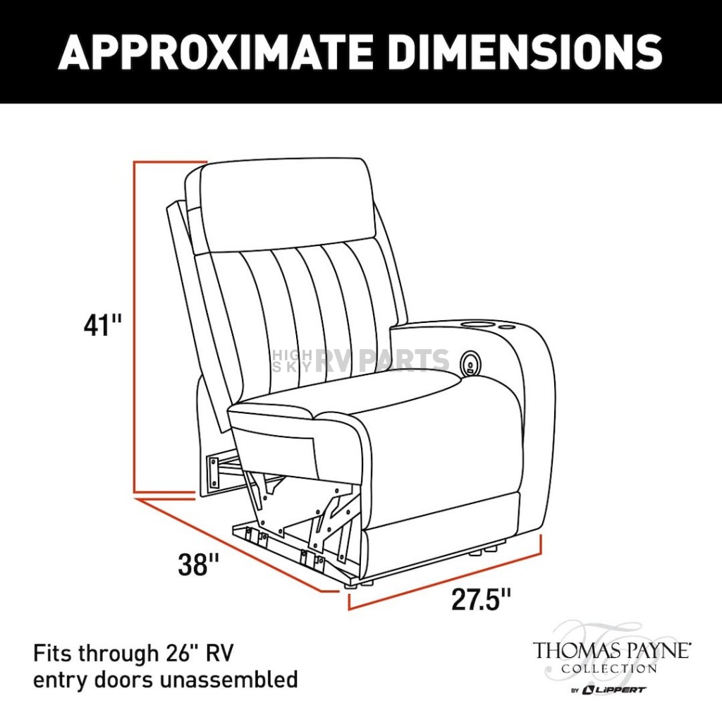 When we say not all RV furniture is created equal, we mean it. Our reimagined Thomas Payne ® Seismic Series Theater Seating turns your RV living space into a high-tech, extra-cozy relaxation sanctuary. Featuring the all-new Thomas Payne Power Port, the best part about this theater-style sofa is that you can conveniently add our new line of Thomas Payne accessories to your living space. The Seismic Series Theater Seating also comes with fully equipped power recline?and lumbar functionalities, heated seats and massage options,?a chaise-style footrest, LED lighting, lighted?dual?cupholders, an integrated storage compartment, and fold-down center console. Plus, each piece has a removable back and can fit inside a 26 Inch wide doorway, helping to make installation easier and less of a hassle. Thomas Payne Furniture Collection gives you the freedom to upgrade your RV with color and fabric options that fit your style. All of our Thomas Payne furniture is lightweight and versatile, allowing you to easily install your furniture inside your RV. Plus, we now offer a Thomas Payne Vinyl Fabric Cleaner, giving you a safe, easy way to keep your furniture clean while you’re camping.Color: Beige
