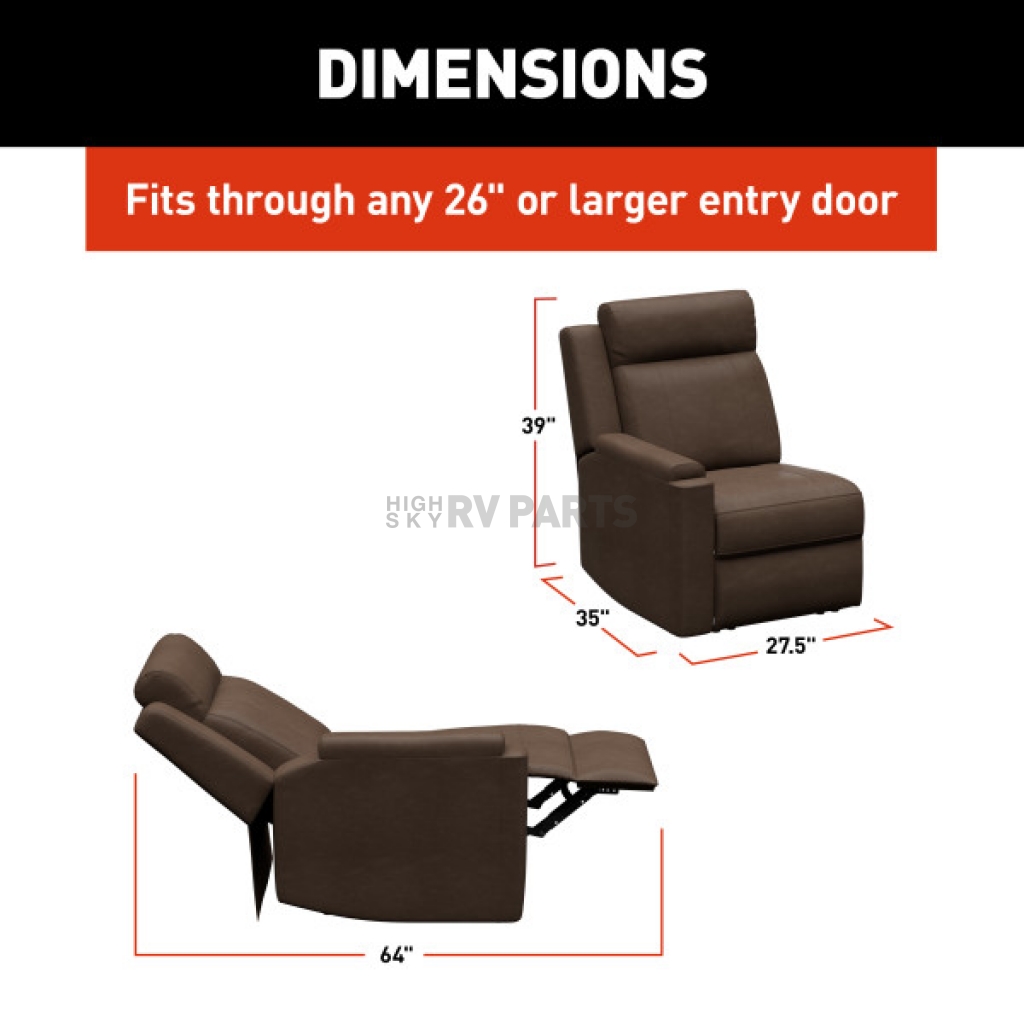Chair; Thomas Payne ®; Heritage Theater Series; Left Hand Recliner; 27-1/2 Inch Width x 35 Inch Dept..Lippert Components Thomas Payne Heritage Theater Series - Center Armless Recliner Chair Brown - 2024044094