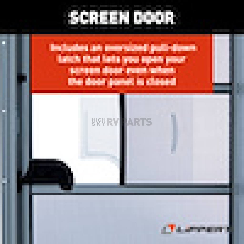 - Screen Door With Oversized Push Down Latch Allows You To Open Screen Door When Panel Is Closed