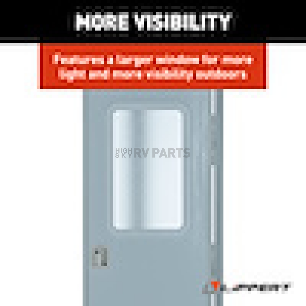 Lippert Components, Inc. is a large and diverse tier-1 supplier serving the recreational vehicle; manufactured housing; trailer; and bus industries. LCI is a subsidiary of Drew Industries and is an industry leader in a broad line of products dedicated to improving the mobile lifestyle, including chassis, fabricated steel chassis parts, slide-out mechanisms, axles, upholstered furniture, mattresses, windows, doors, leveling and stabilization equipment, suspension enhancement products, electronics, thermoformed products, awnings and aluminum extrusion products.Type: Square Door