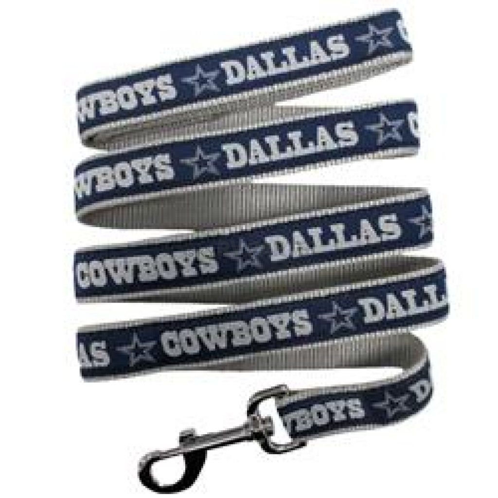 Pet Leash; For Use With Dogs; Web Type With Loop Handle; Small; 4 Foot Length x 3/8 Inch Width; Dallas Cowboys Word Mark With Woven Team Logo; Nylon With Metal Snap Hook; With Hardware And Dog Clip