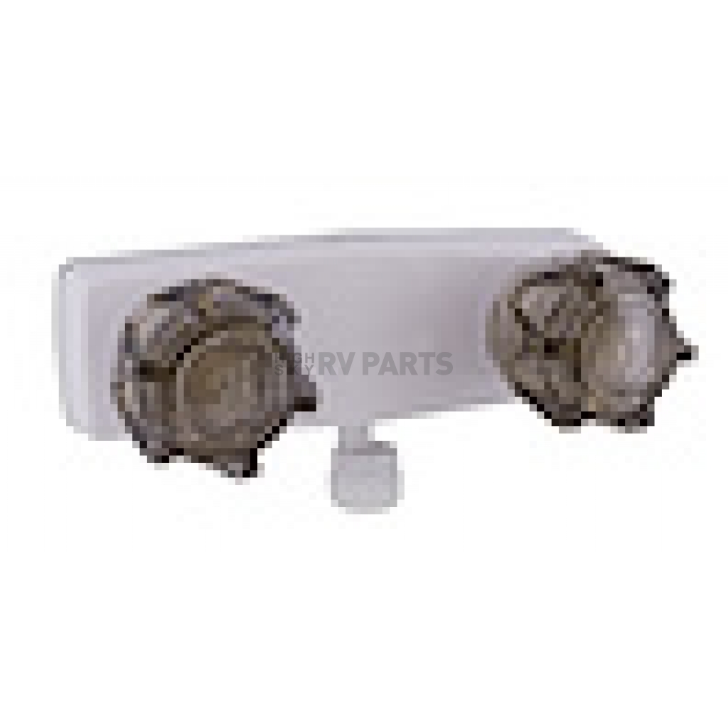 Shower Control Valve; 2 Valve; Single Piece Wall Mount; Brass Compression Valve; 4 Inch Center Distance; 2 Hole Application; 2 Smoked Acrylic Knob Handle; White; Plastic Underbody; With Vacuum Breaker To Attach Hand Held Shower Hose; With Individual Box