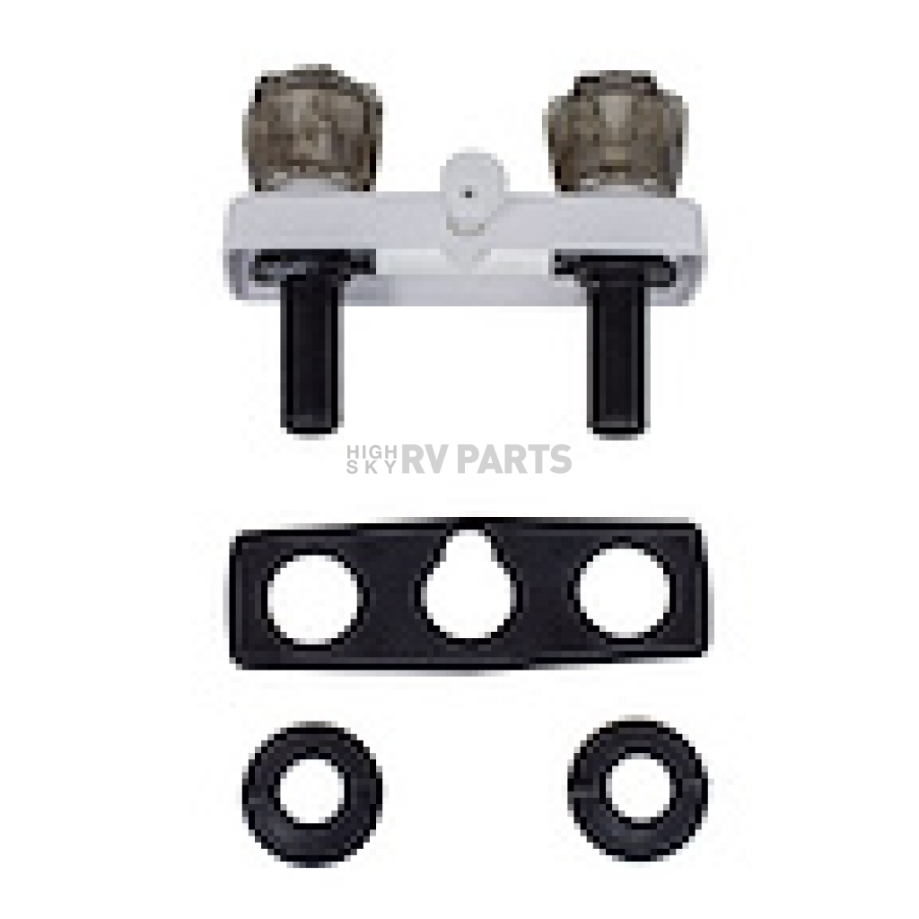 Dual-handle plastic shower valve has a vacuum breaker to attach a handheld shower set and prevent backflow contamination of your clean water supply. 2-Hole installation.