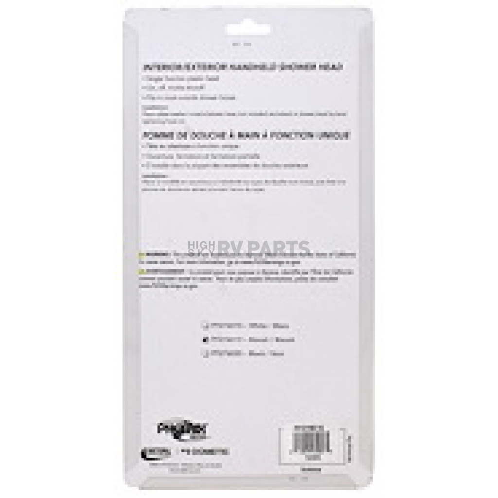 Shower Head; Hand-Held; For Interior/ Exterior Shower; With Single Function Spray Setting; With Trickle Shut-Off; Biscuit; Plastic; With Blister Package