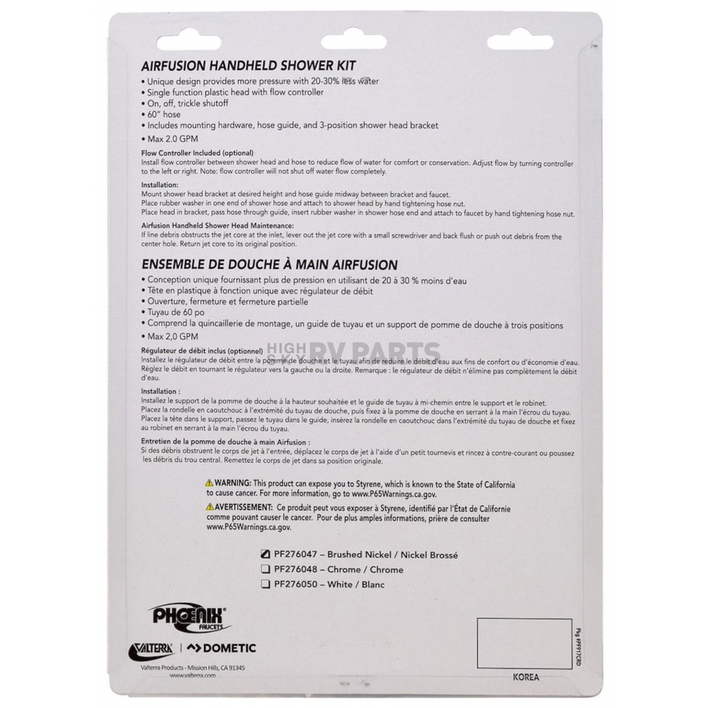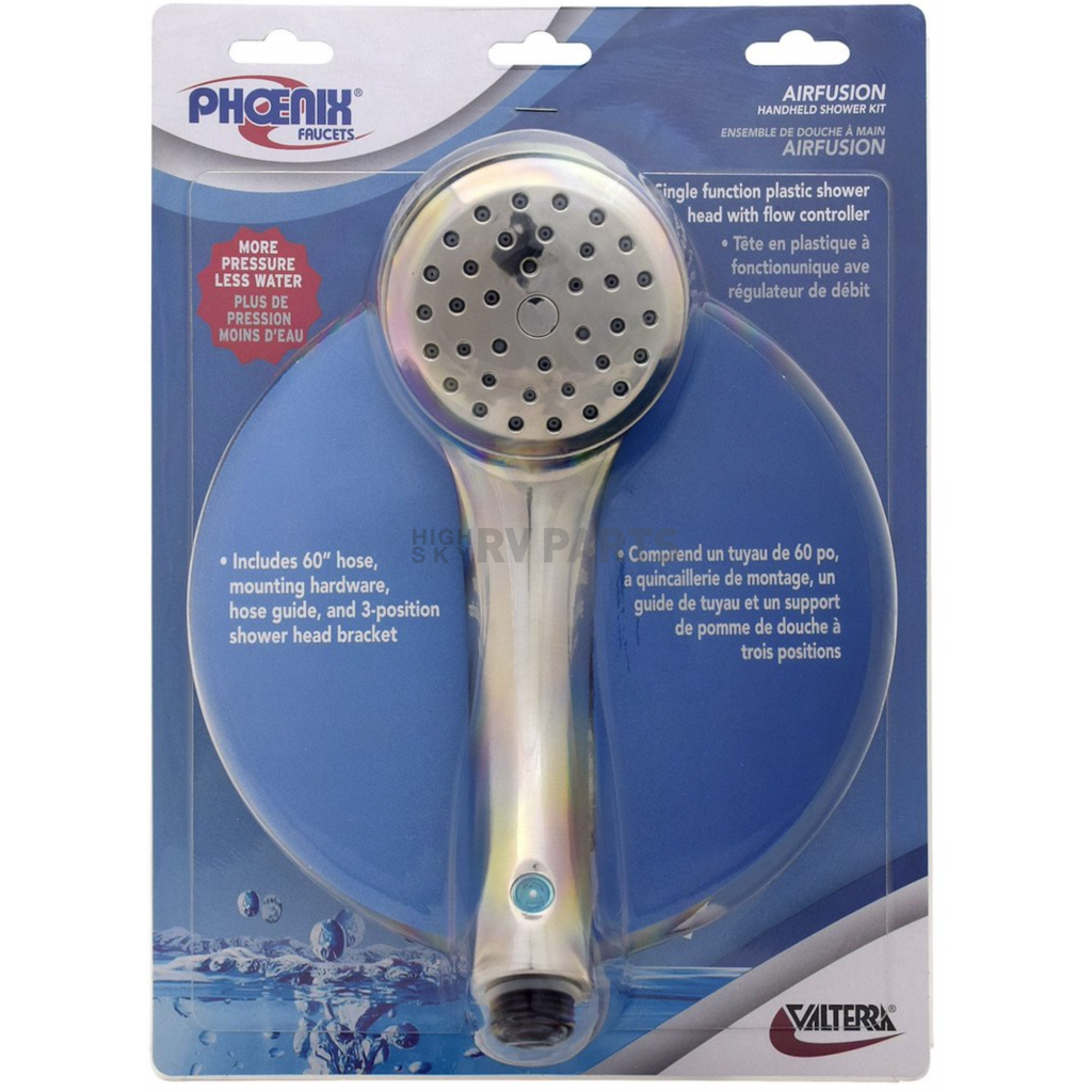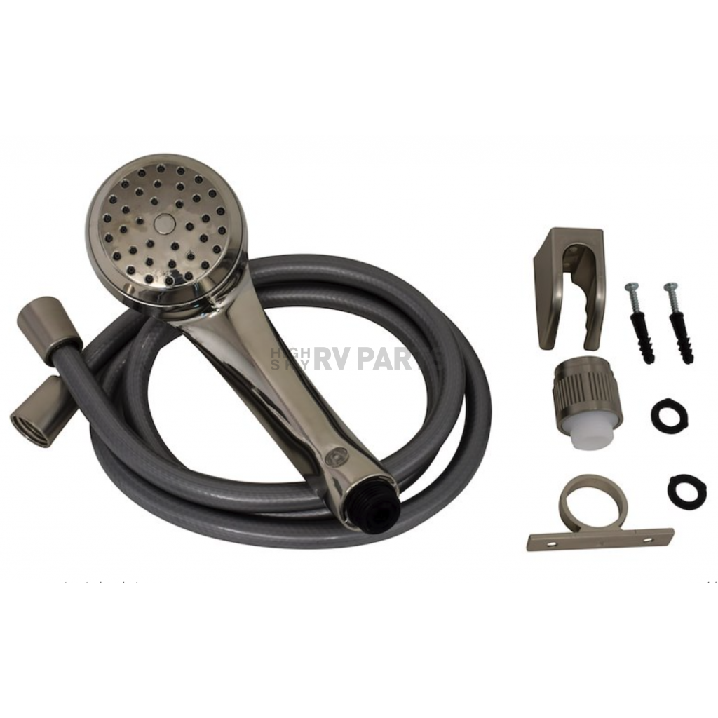 Shower set has a spray pressure setting that lets you take a shower in your RV after a day of hiking, biking, and swimming. Flow controller lets you increase or decrease the flow of water. Built-in aerator helps conserve your limited water supply.