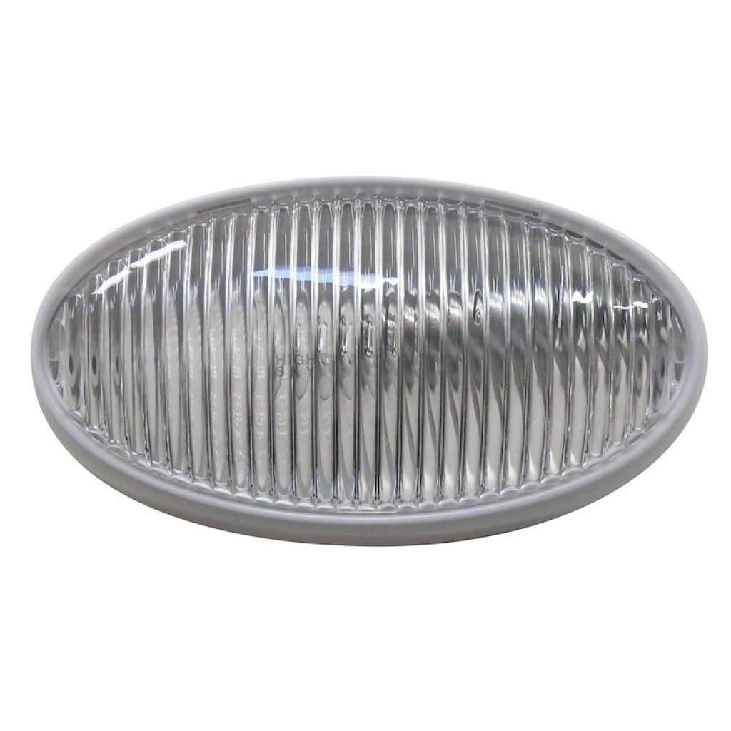Porch Light; Diamond Group; Incandescent; 12 Volt DC; 6 Inch Length x 2 Inch Width x 3/5 Inch Thick Oval; Clear Lens; White Housing; Without Switch